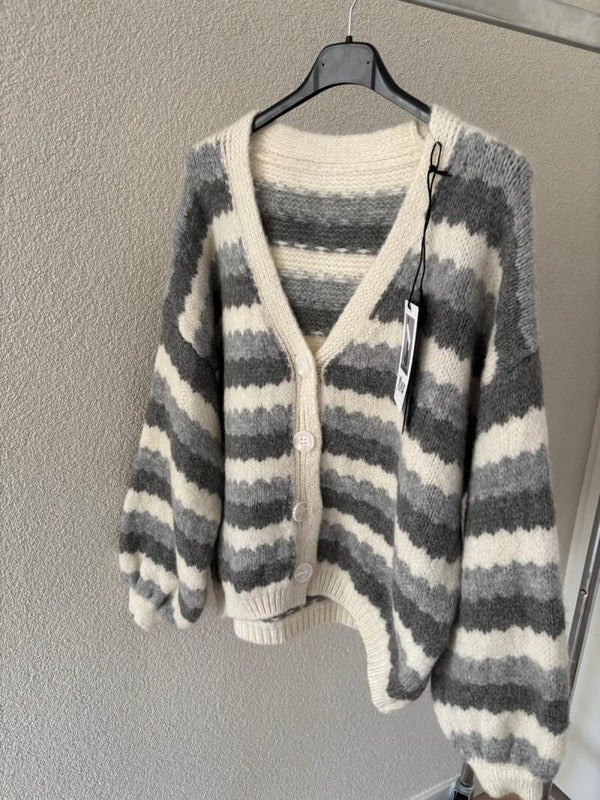 Prachtig vest met grijze strepen met knopen.