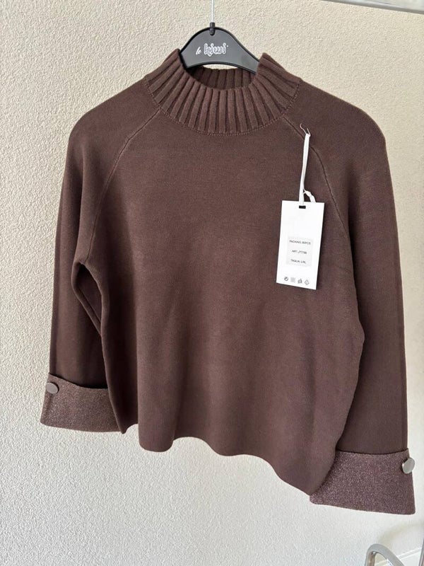 Super mooi truitje met glitter details en knoop op de mouwen.