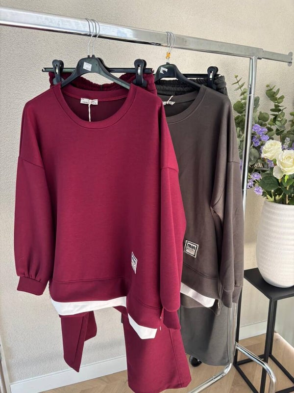 Heerlijk comfy pak met witte bies en ritsdetail aan de zijkant