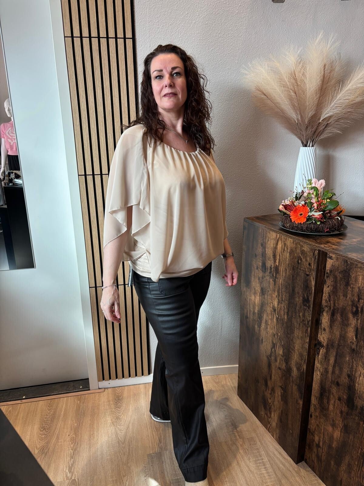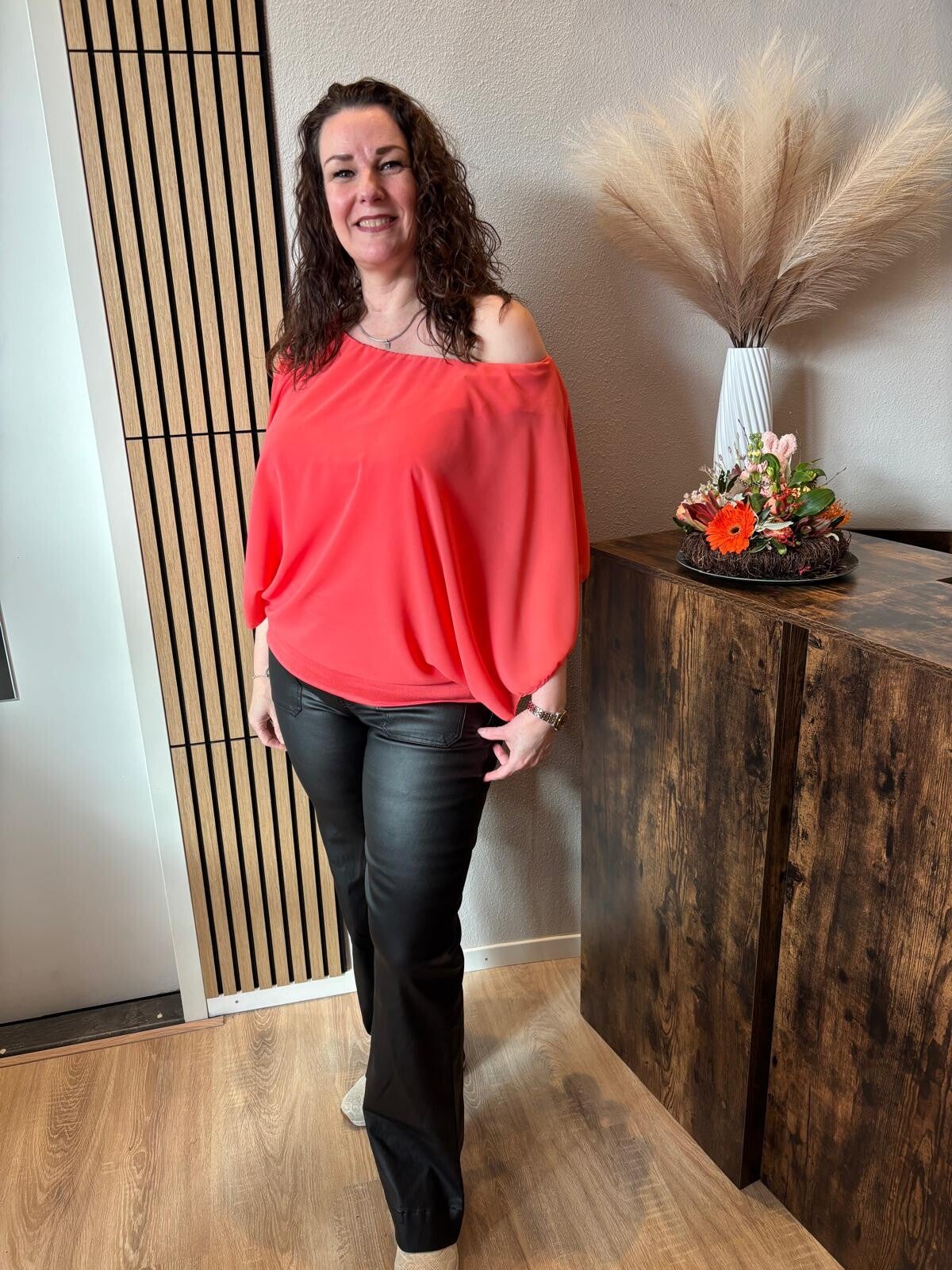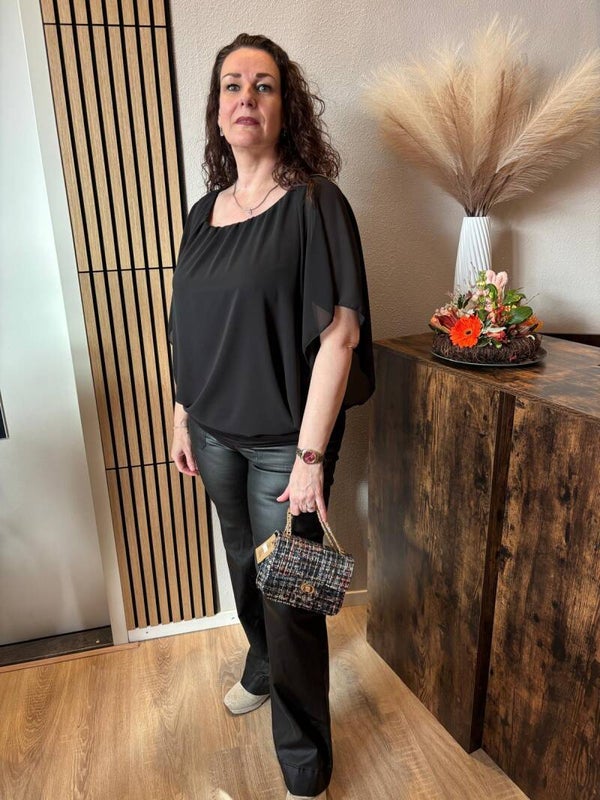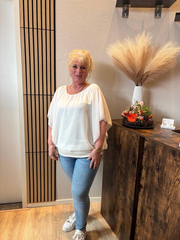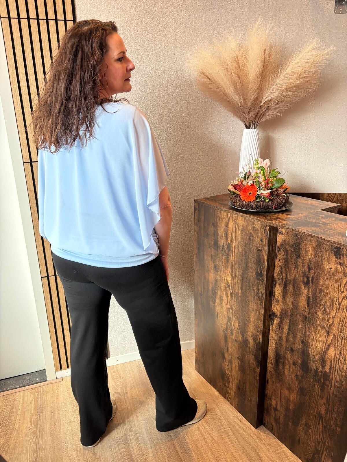 Leuke ballon top met korte mouwen. Onderaan de top zit een elastieke band. De top is verkrijgbaar in 6 kleuren. De top is te dragen t/m maat 46.
