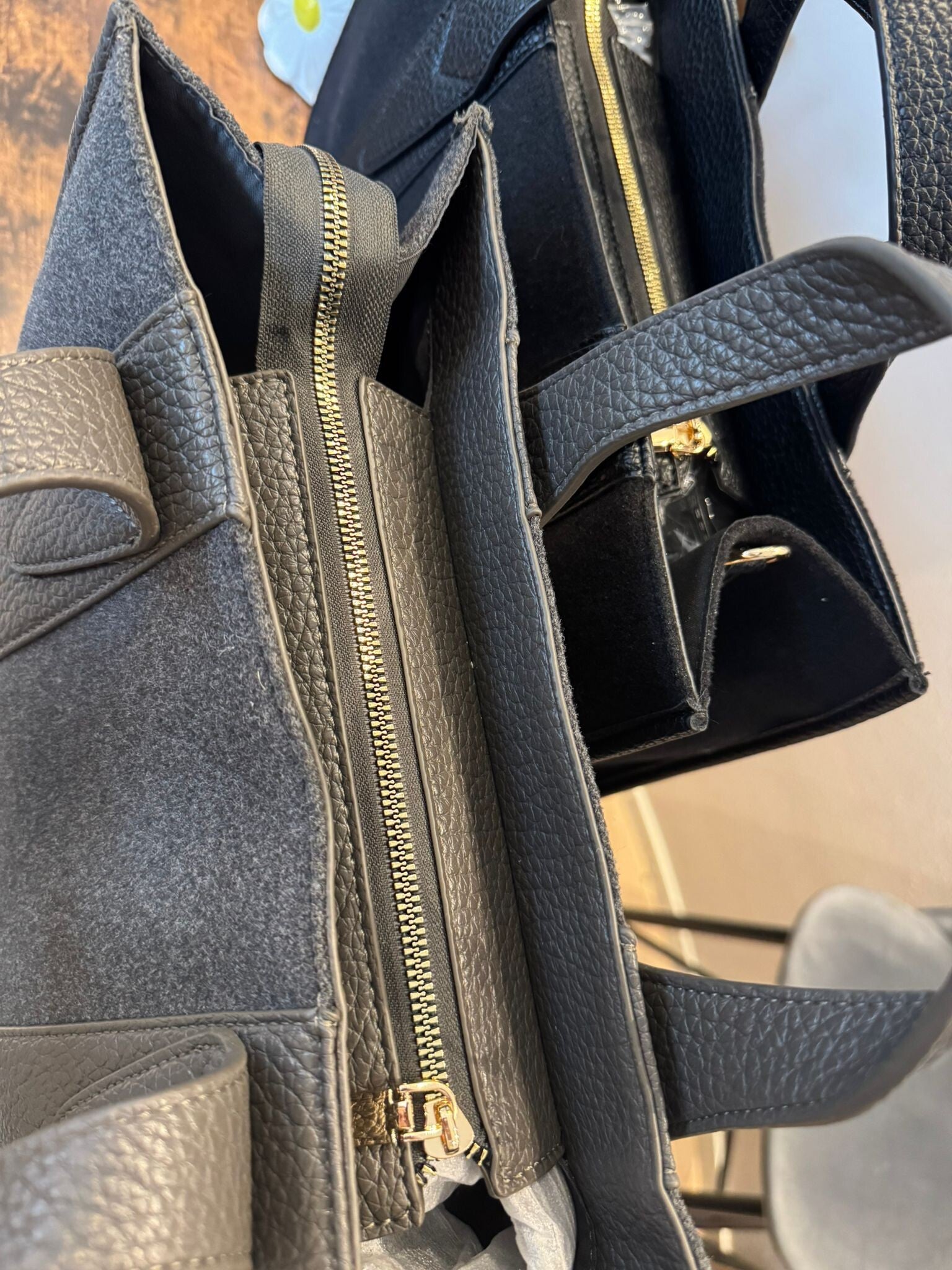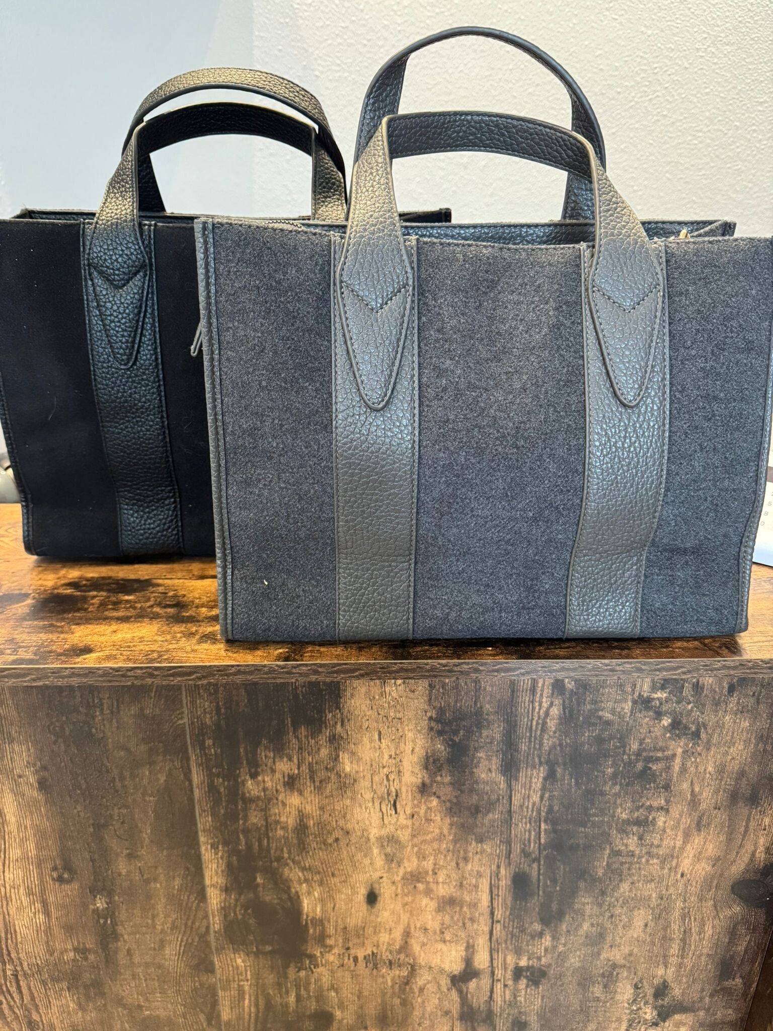 Dit zijn mooie kwaliteit tassen. De tas bevat een leren handsvat, de rest van de tas is een suede stof. De tas kan mooi afgesloten worden met een rits, ook zit er nog een bijpassende strap bij.